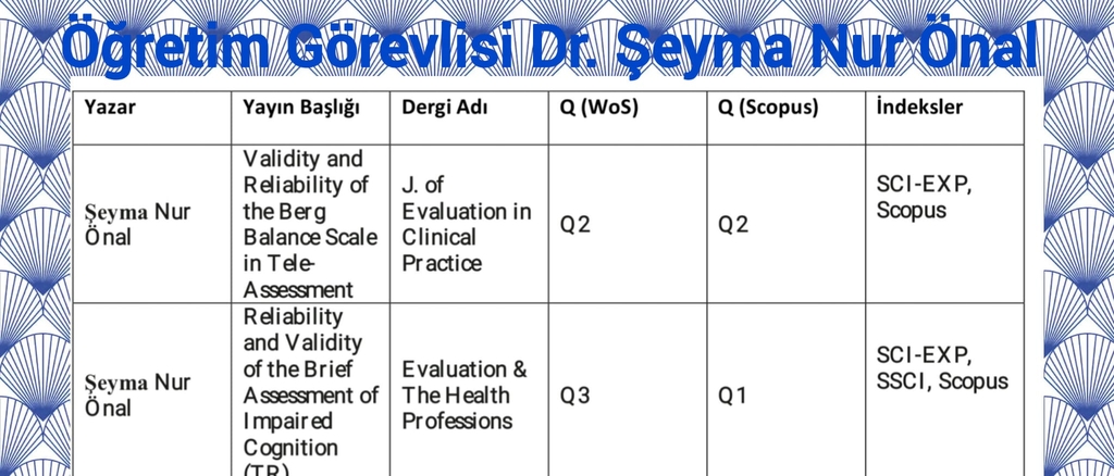 Şeyma Nur Önal: İnme rehabilitasyonu ve klinik değerlendirme yöntemleri üzerine nitelikli makaleleriyle literatüre önemli katkılar sunmuştur.