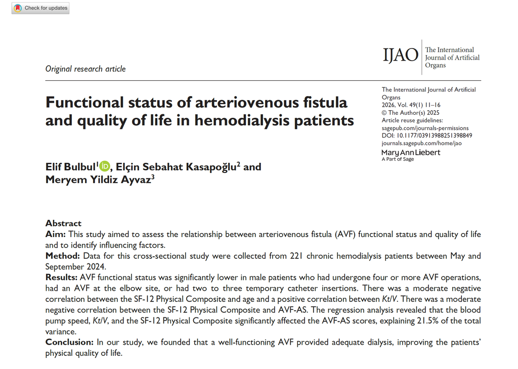 3. Bulbul E, Kasapoğlu ES, Yildiz Ayvaz M. Hemodiyaliz hastalarında arteriyovenöz fistülün fonksiyonel durumu ve yaşam kalitesi.