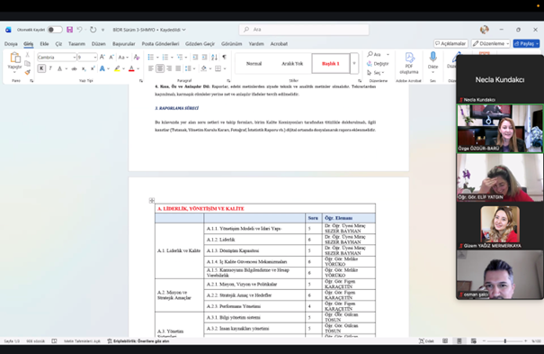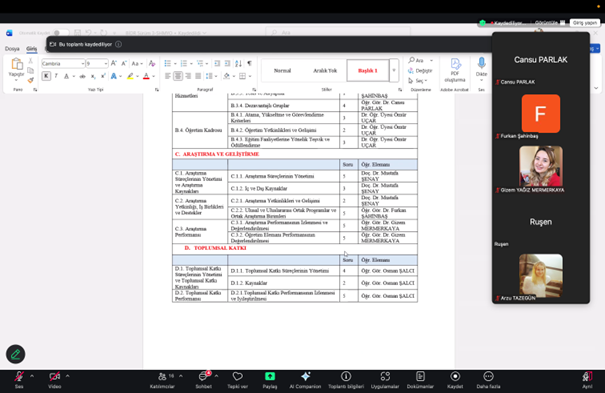 Komisyon üyeleri tarafından rapor kapsamlı şekilde değerlendirilerek mevcut durum, güçlü yönler ve geliştirilmesi gereken alanlar üzerinde görüş alışverişinde bulunuldu. Toplantı, kalite güvencesi ve sürekli iyileştirme çalışmaları doğrultusunda yapılması planlanan faaliyetlerin belirlenmesiyle sona erdi.