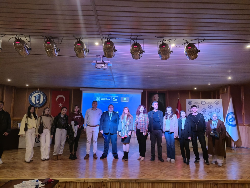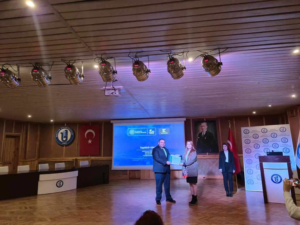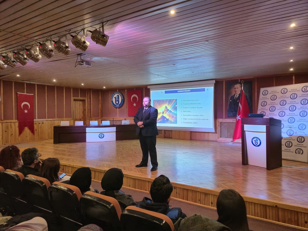 Yüksekokulumuz Proje ve Bilimsel Etkinlik Komisyonu tarafından hazırlanan, “Girişimcilik, İnovasyon ve KOSGEB Destekleri Semineri” 25 Kasım 2025 tarihinde saat:11.00’de Ağdacı Konferans Salonunda gerçekleştirildi. Bartın KOSGEB Müdürü Sayın Gökhan AKDAĞOĞLU’nun konuşmacı olarak yer aldığı seminerde girişimci olmak, günümüzün girişimciliğinin gerekleri olan inovatif düşünme ve KOSGEB destekleri hakkında öğrencilere detaylı bilgi verildi. Katılımın oldukça yoğun olduğu seminer sonunda öğrencilerin soruları yanıtlandı ve Yüksekokul Müdürümüz Doç. Dr. Özge ÖZGÜR tarafından Gökhan AKDAĞOĞLU’na teşekkür belgesi takdim edildi.