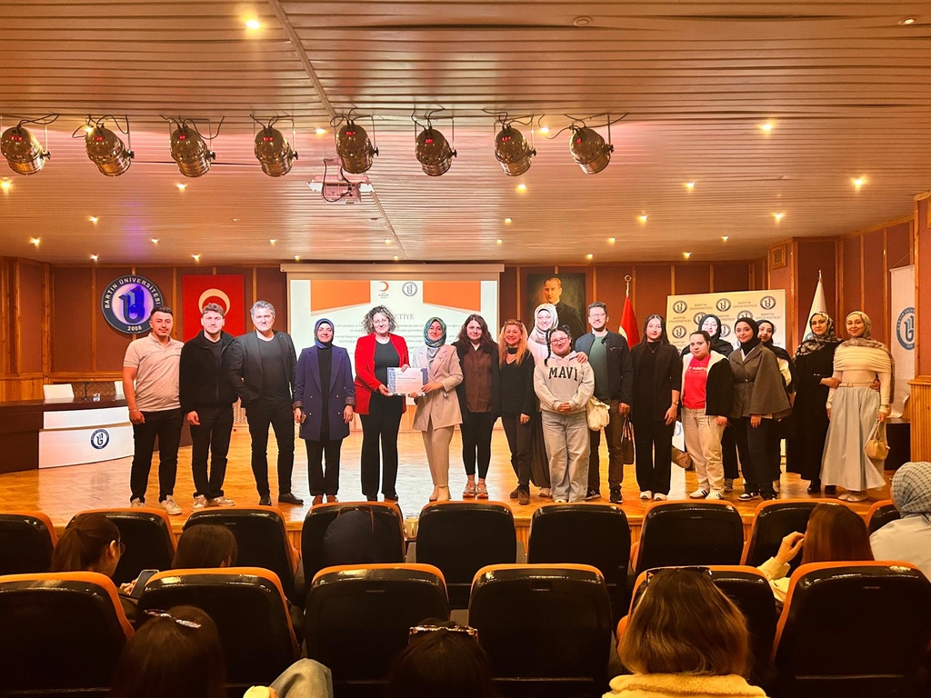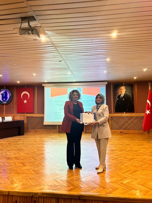 Program sonunda, Sağlık Hizmetleri Meslek Yüksekokulu Müdür Yardımcısı Öğr. Gör. Elif Yatgın tarafından konuşmacı Öğr. Gör. Dr. Şeyma Nur Önal’a katkılarından dolayı teşekkür belgesi takdim edildi.