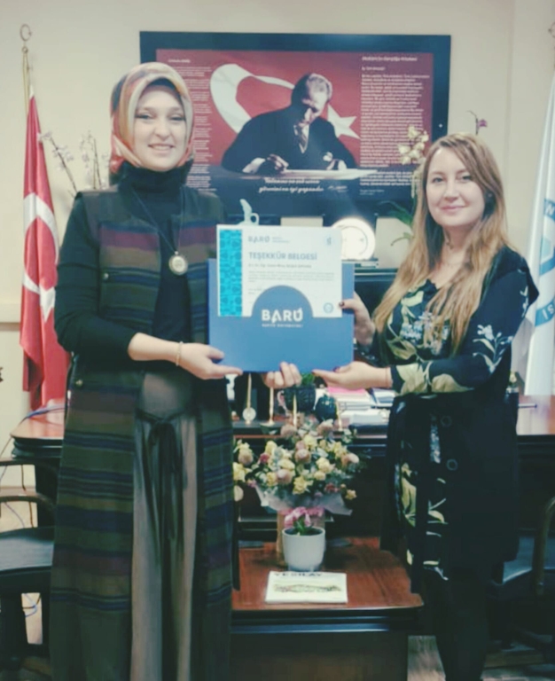 Sağlık Hizmetleri Meslek Yüksekokulu Müdürü Prof. Dr. Özge Özgür, Dr. Öğr. Üyesi Miraç Sezer Bayhan’a bugüne kadar yapmış olduğu değerli katkılar, özverili çalışmalar ve kuruma sağladığı başarılar dolayısıyla teşekkürlerini iletti. Prof. Dr. Özgür, hizmetleri anısına Bayhan’a bir Teşekkür Belgesi takdim etti.