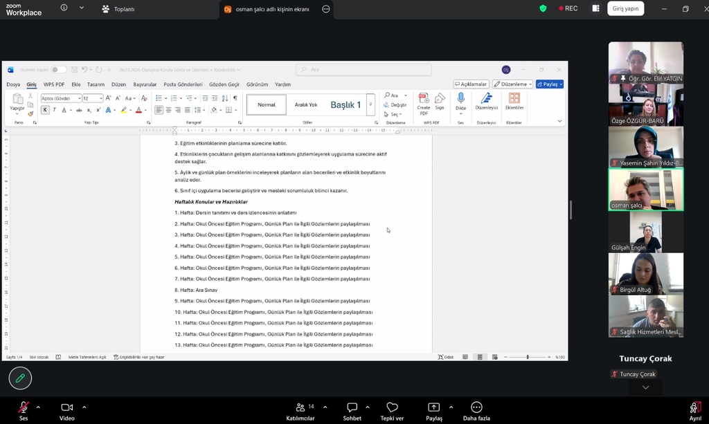 Yüksekokulumuz Danışma Kurulu toplantısı, Yüksekokulumuz Müdürü Prof. Dr. Özge Özgür başkanlığında 24 Nisan 2026 Cuma günü saat 11.30’da çevrimiçi olarak gerçekleştirildi.